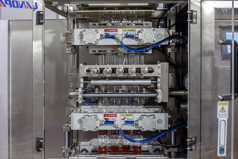 4. The high degree of automation, filling, feeding, printing batch number, cutting and tearing, finished bag output once, quick and convenient adjustment