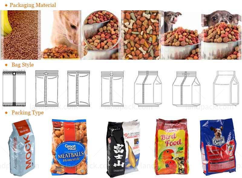 Suitable for weighing packaging of 5-15 kg granular products, such as dog food, cat litter, cat food, fish food and other granular pet food packaging.
