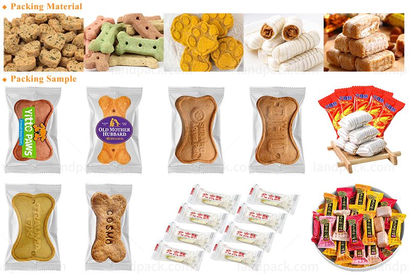 This machine is mainly used for packaging dog treats, bread/bakery, chocolate, sweets, biscuit, vitelline pie, lollipops, moon cakes, ice cream, cards, wet tissue, spoon, toothbrush, soap, scourer balls, syringes, hardware, commodity and the products with regular shape and no sticky.