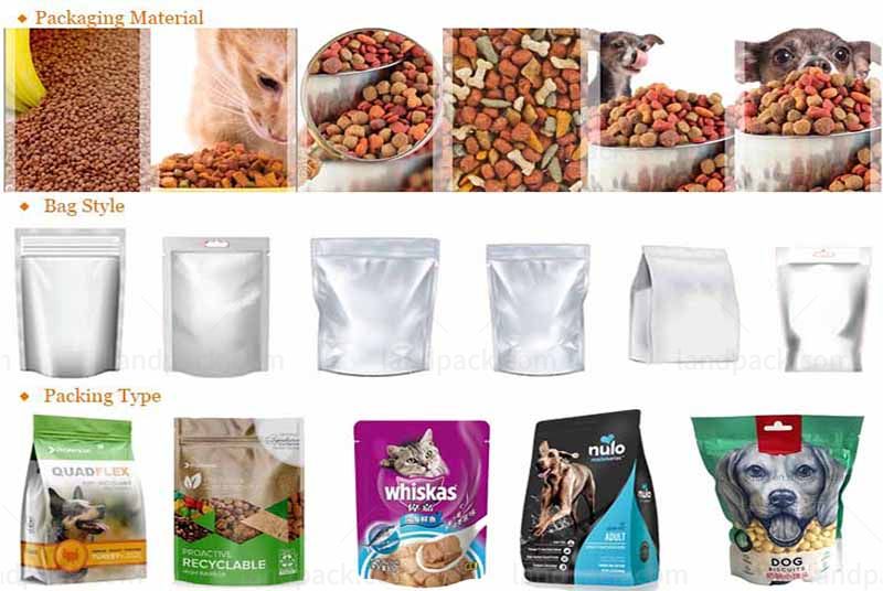 Suitable for small granule material,such as dog food, cat food, fish food, bird food, and other granular pet food pre-made bags.