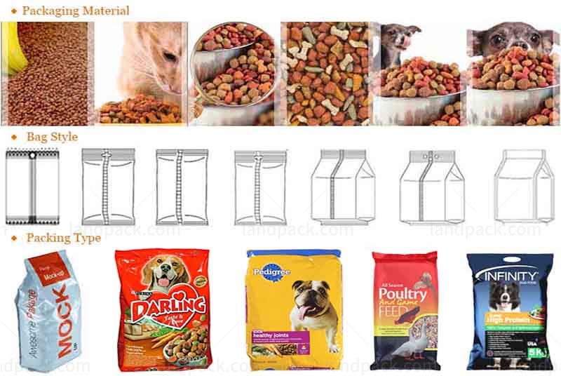 Suitable for automatic packaging of granular and solid products with high daily output, such as dog food, cat food, fish food, bird food, and other granular pet food.