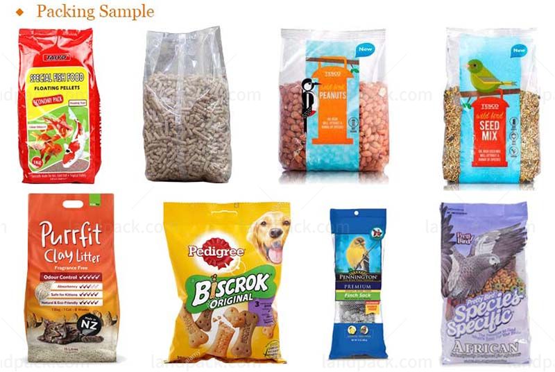 Suitable for the weighing and packaging of various granular products, such as cat litter, rice, sugar, beans, dog food, pet food, etc.