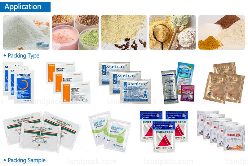 Automatic multi lane sachet pharma powder packing machine is suitable for many kinds of powder products, such as pharma powder, medical powder, health product powder, glucose powder, seasoning powder, insecticide powder, chemical powder, nutrition powder, etc.