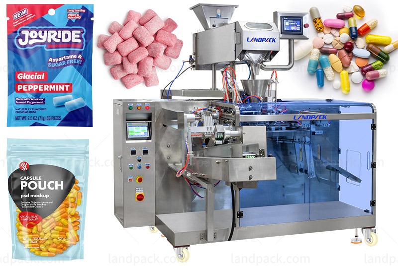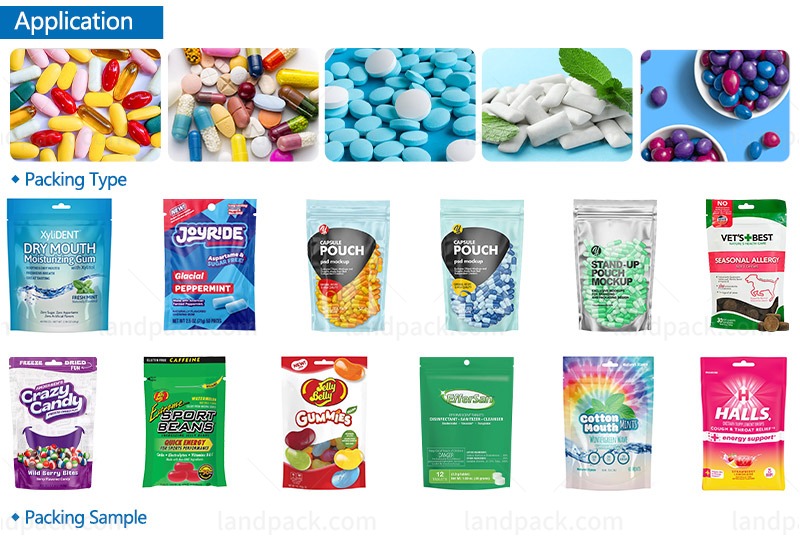 This counting packing machine is suitable for fully automatic counting nitroge gas filling sealing and packing for various granular products. Such as tablets pills capsules chewing gum soft gel vitamins, etc.