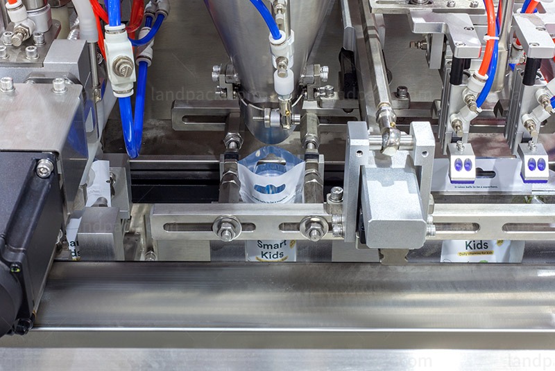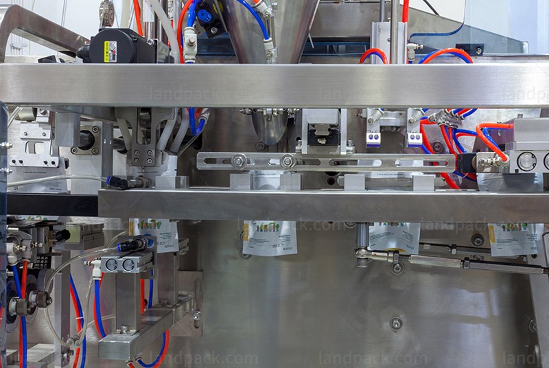 Work Flow | 1. Giving bag, 2. Pick up the bag(coding), 3. Open the bag up and down, 4. Filling, 5. Heating sealing, 6. Output of product | |||