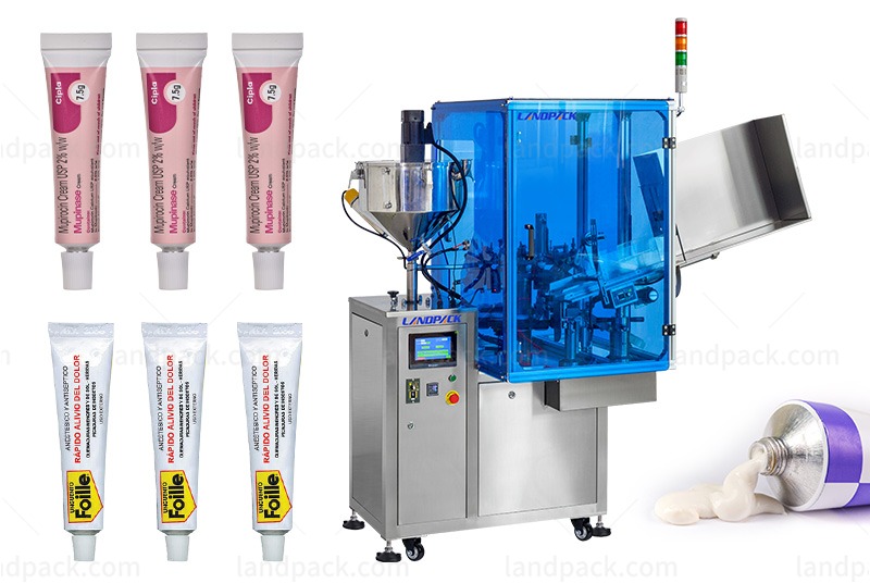 The automatic aluminum tube filling machine is suitable for pharmaceutical, ointment, adhesive, AB glue, epoxy glue, skin cream, hair dye, shoe polish, toothpaste, and other liquid or paste materials. The machine’s outrigger mechanism is made of aluminum alloy and stainless steel and is equipped with a protective cover.