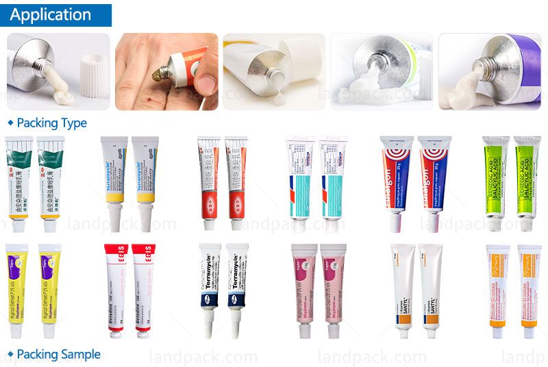 The product is suitable for automatic color code aligning, filling, sealing, date printing and end cutting of various plastic tubes and aluminum composite tubes. It is widely applied in daily chemical industry, medicine, food, etc. Such as pharma Paste, eye drops, glue, scalding cream, toothpaste, conditioner, etc.