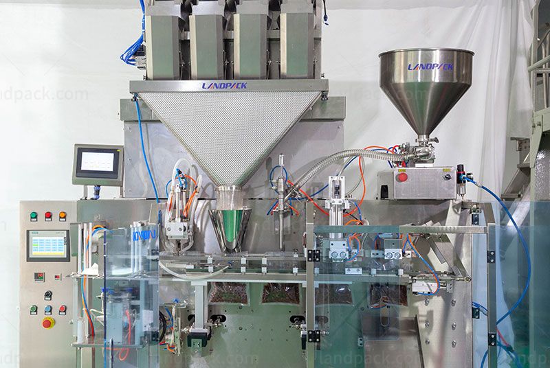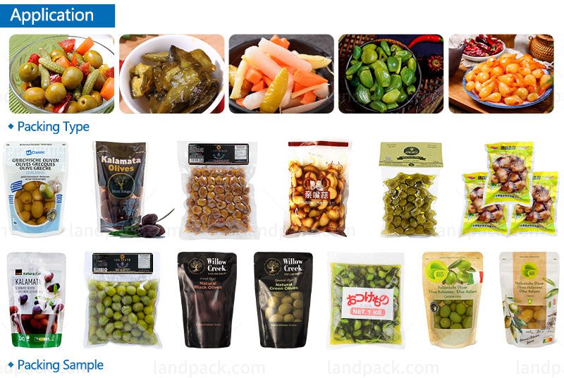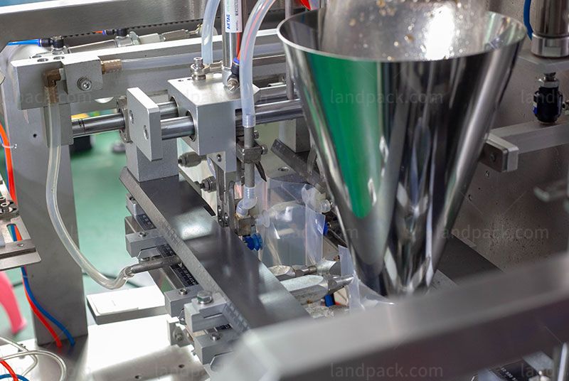 Suitable for packing grains and particles into stand-up pouch doypack pouches premade pouches such as pickles, kimchi, pickled cucumber, kelp, peanuts, candy, beans, granular medicine, seed, etc.