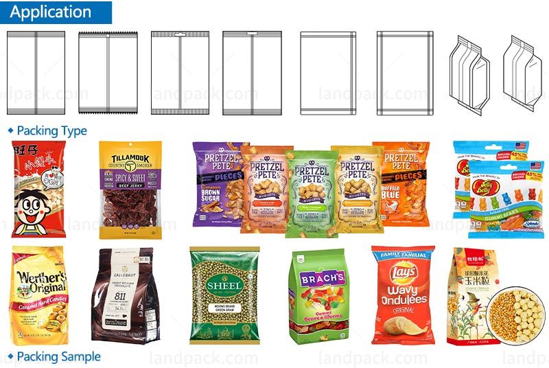 Suitable For Packing Puffed Food, Popcorn, Potato Chips, Crisps, Snacks, Candy, Biscuit, Sunflower Seed, Pistachio, Peanuts, Chocolate, Nuts, Pet Food, Small Metal Parts And Plastic Parts, Etc.