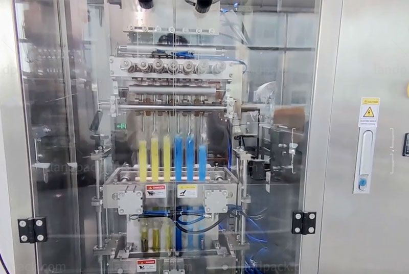 This stick packaging and bag-in-bag machine line consists of LD480YL multi-lane stick pack liquid packaging machine, a sorting bag equipment and LD350 vertical filling sealing machine. It can realize stick packed packaging into a bag.