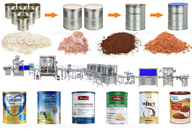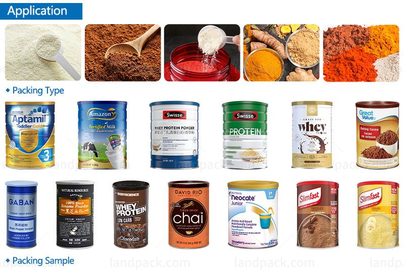 This powder filling packing line with ultraviolet sterilizer and vacuum nitrogen is suitable for automatic filling of various powder products, such as milk powder, coffee powder, spice powder, protein powder, nutritional powder, medicine powder, meal replacement powder, etc.
