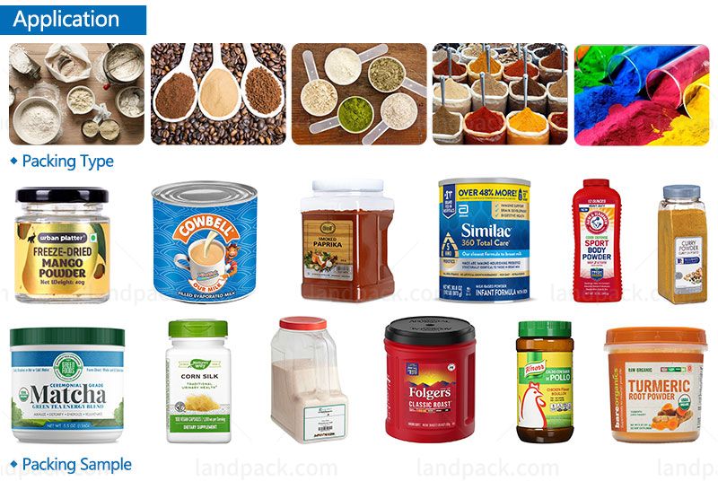 High Accuracy Powder Filling Machine With Anti-leakage Device, It is suitable for automatic filling of various powder products, such as Milk powder, protein powder, nutritional powder, coffee powder, medicine powder, chemical powder, meal replacement powder, etc.