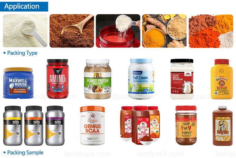 This dry powder filling machine is suitable for the automatic filling of various powder products, such as milk powder, protein powder, nutritional powder, coffee powder, medicine powder, chemical powder, meal replacement powder, etc.