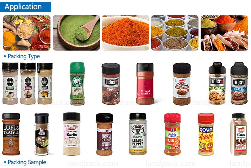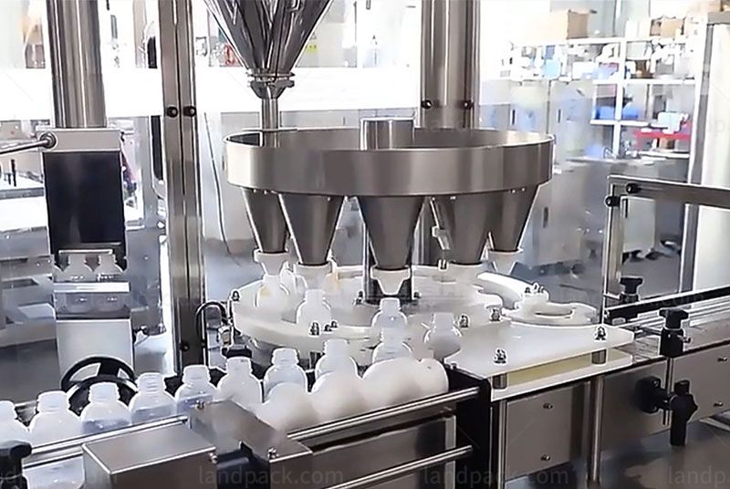 High speed powder little bottle rotary filling machine is suitable for automatic filling of various powder products, such as spice powder, chili powder, milk powder, protein powder, seasoning powder, onion powder, ginger powder, etc.