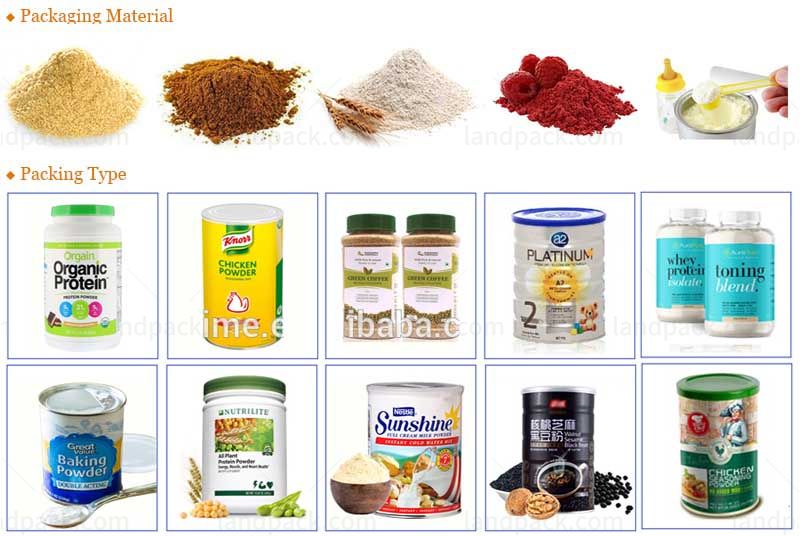 Widely used in powder filling in food industry, pharmaceutical industry, chemical industry, Suitable for round cans of PET plastic cans, tin cans, aluminum cans, paper cans, etc.