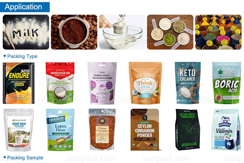 Ideal for automatic packing of various powders, this machine handles products such as milk powder, protein powder, premium whey powder, coffee powder, food additives, condiments, tapioca powder, coconut powder, pesticide powder, and fertilizer granules. Designed for precision and efficiency, it ensures consistent, high-quality packaging across diverse powder products.