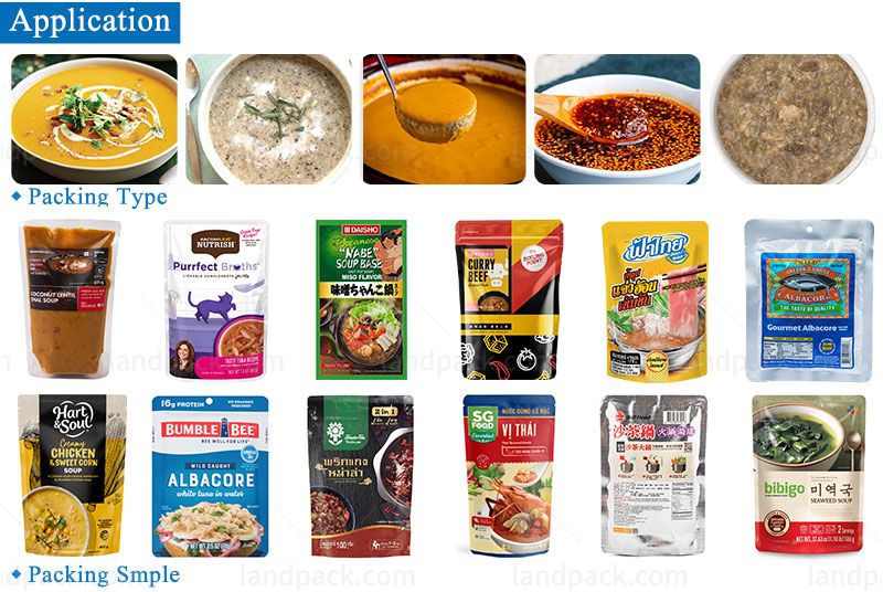 Ideal for packing a variety of heat-processed products in retort pouches, including thick liquids such as chili sauce, sunflower oil, tomato sauce, peanut butter, soups, and bean sauce. Provides safe, efficient, and high-quality packaging solutions for extended freshness.