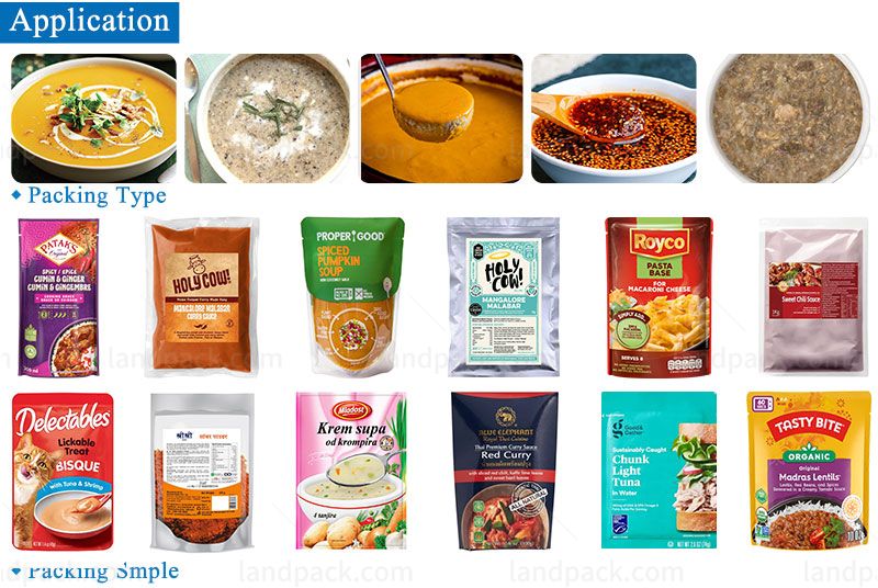 Ideal for packing a variety of heat-processed products in retort pouches, including thick liquids such as chili sauce, sunflower oil, tomato sauce, peanut butter, soup, and bean sauce. Ensures safe, efficient, and high-quality packaging solutions.