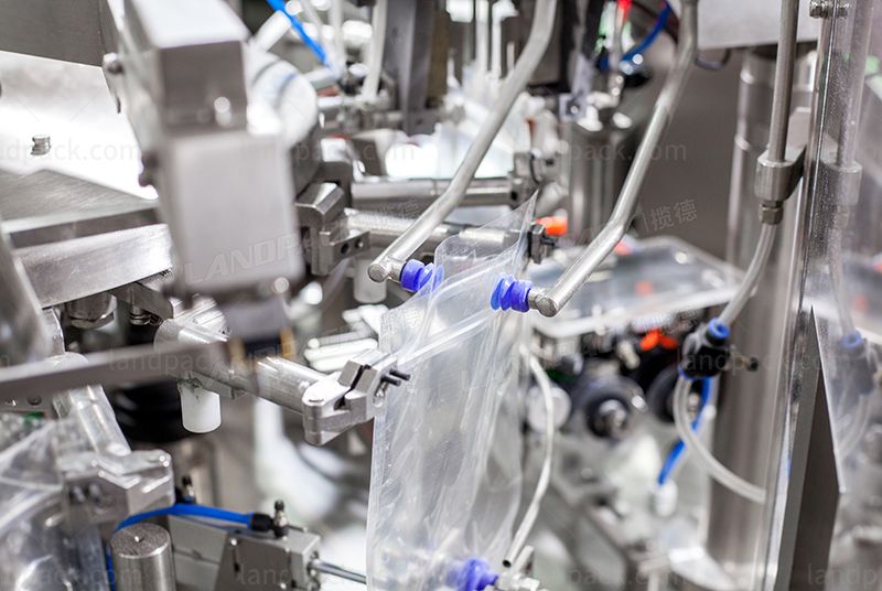 Work flow | giving bag→coding →opening →filling 1 →filling 2→ auxiliary→ exhaust→heat sealing→ .forming and output product |