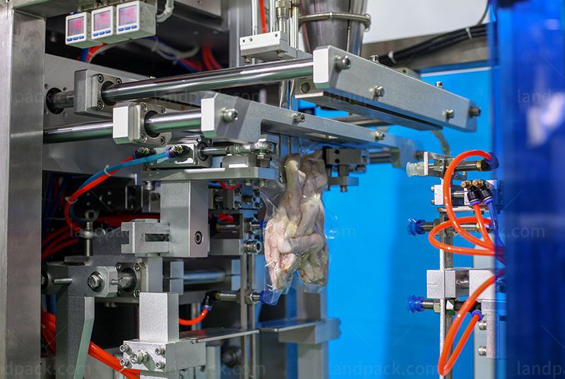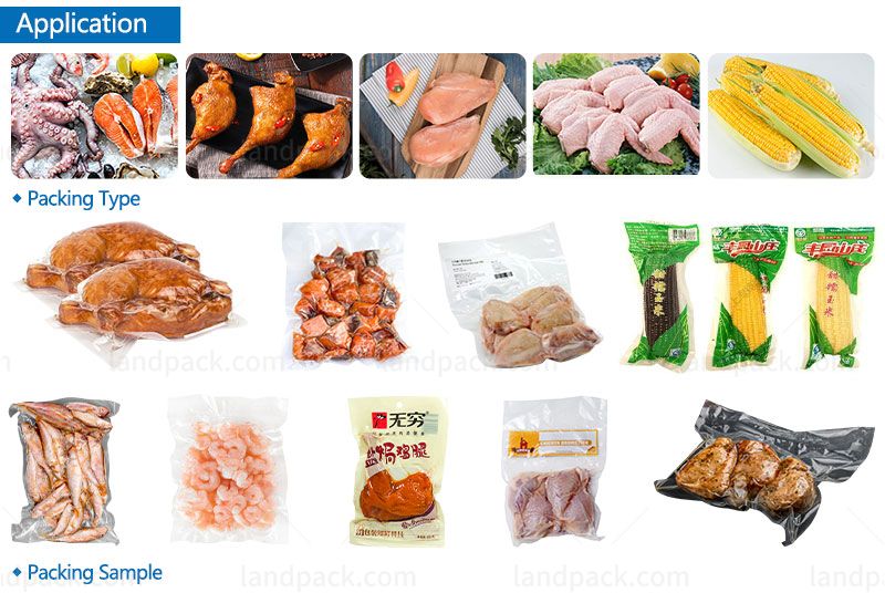 This vacuum mini doypack packaging machine is suitable for food products that need to be vacuumed, such as whole chicken, meatballs, chicken feet, frozen food, seafood, chicken wing, shrimp, fish, etc.