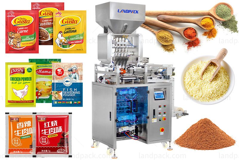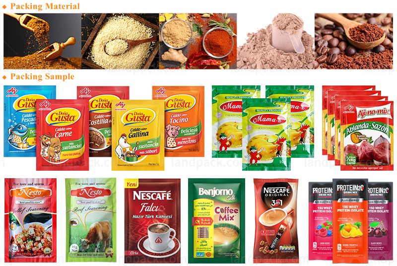 Landpack high accuracy powder multi track packing machine, it is suitable for many kinds of powder products, such as spice powder, medical powder, chemical powder, flour, milk powder, coffee powder, glucose, medical powder, nutrition powder, etc.