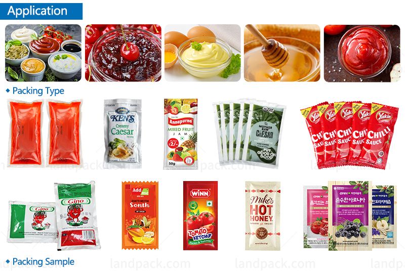 This multi track sachet liquid packaging machine is suitable for all kinds of paste, and viscous liquid packaging, such as ketchup, jam, chili sauce, honey, pizza sauce, peanut butter, tartar sauce, chocolate sauce, chili sauce, cream, liquid butter, juice, shower gel, shampoo, etc.