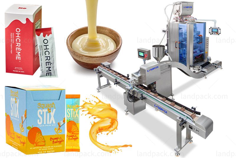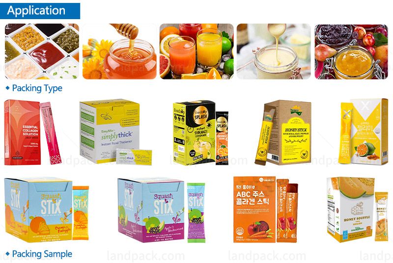 The multi-lane liquid stick packing machine with a counting and cartoning line is ideal for efficiently packaging various liquid products. Suitable applications include condensed milk, shampoo, shower gel, fruit juice, honey, milk, mouthwash, sauce, jam, jelly, and more. This versatile machine ensures precise filling and streamlined packaging for diverse industries.