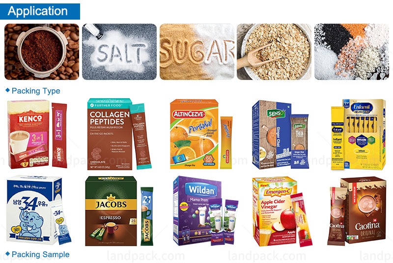 The automated stick packaging boxing line is ideal for packing free-flowing particles in food, healthcare, and pharmaceutical industries, such as lemon powder, probiotic powder, instant coffee, sugar, and medicinal granules. It ensures efficient and precise packaging.