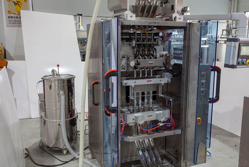 This packaging and boxing system consists of LDBK-280 Multi-lane powder stick pack packaging machine, a sorting bag equipment and boxing machine. It can realize stick packed packaging into a box.