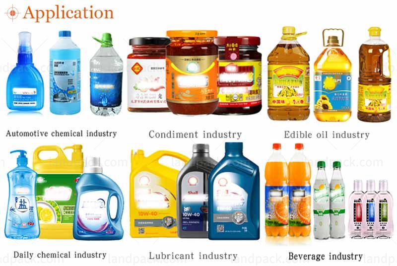 Suitable for automatic bottled and canned in Automatic chemical industry, daily chemical industry, lubricant industry, condiment industry, beverage industry, edible oil industry and so on.