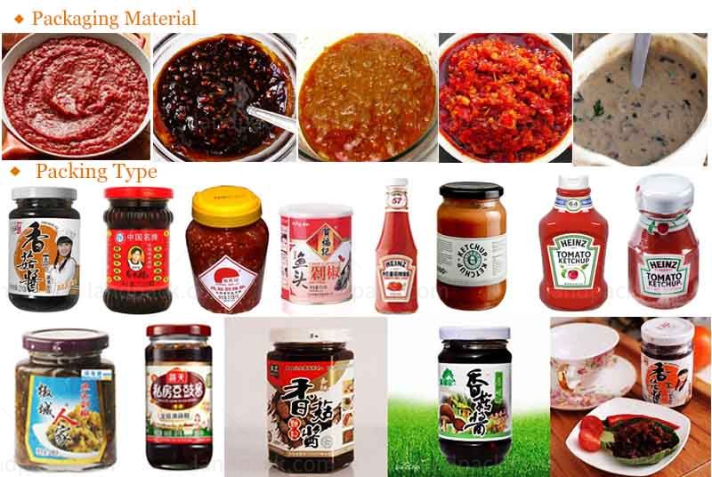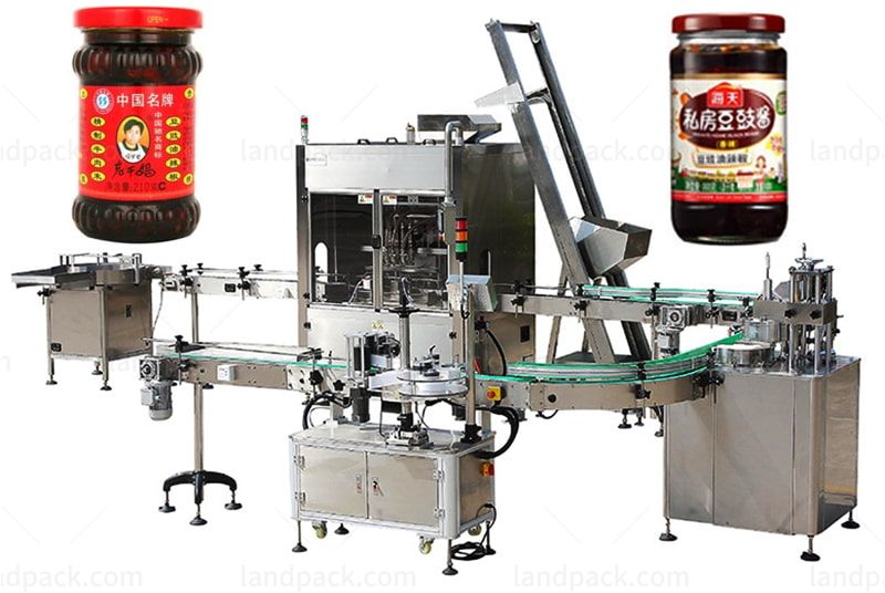 This production line is suitable for the filling of some large particle sauce products, such as: chili sauce, mushroom sauce, spicy sauce, seafood sauce, beef sauce, bean paste, tempeh sauce and other sauce products. The production efficiency of this automatic chili sauce filling and capping production line is very high, which can reach thousands of bottles per hour, which is very suitable for the needs of some large-scale production enterprises.