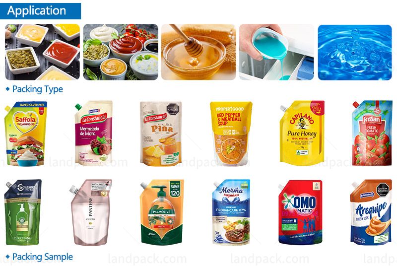 Ideal for packing liquids into various pre-made pouches, this machine is suitable for products such as sauces, rice vinegar, fruit juice, beverages, tomato sauce, peanut butter, jam, and pastes. Provides efficient, reliable filling for a wide range of liquid and semi-liquid products.