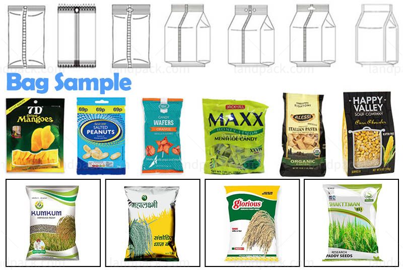 This machine can be used for different fields, and can also pack granules, powder, paste, liquid objects. like Agricultural products(rice seeds, vegetable seeds, crispy rice,potato,vegetables ) food(peanut,Melon seeds, almond, candy, biscuit, potato chips ), medical(medical granules), seasoning(GMS, sugar, salt), industrial parts(small screw,screw cap), and other fields like, tea etc.