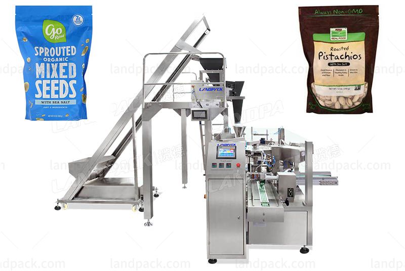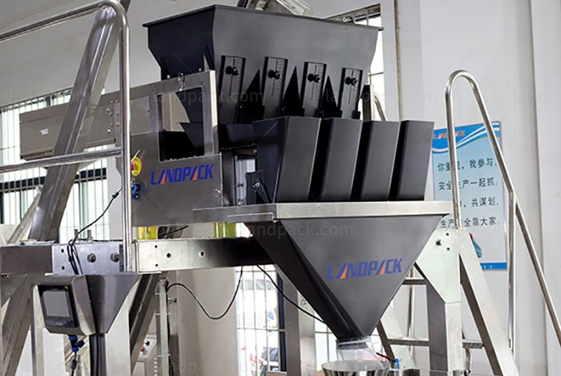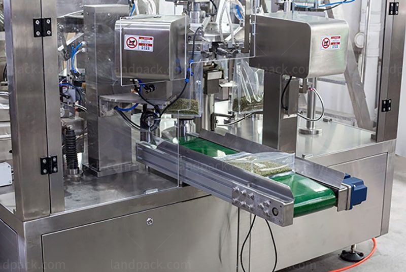 Machine machine can equipment with different metering system like weigher, liquid pump, auger filler, bucket chain for different kinds of product filling and packing in premade bag.