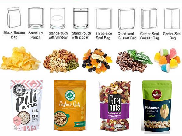 Pouch Type: All type of heat sealable preformed side seal bags, gusseted bags, block bottom bags, zip-lock recloseable bags, stand-up pouch with or without spout etc.