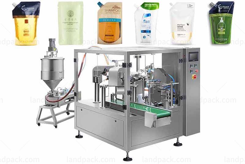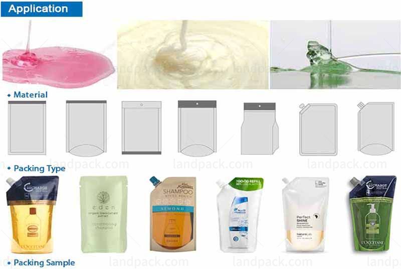 It is suitable for automatic packaging of various liquid products in Pre-Made Pouches, such as shampoo, sauce, rice vinegar, fruit juice, beverage, tomato sauce, peanut butter, jam, paste, etc.