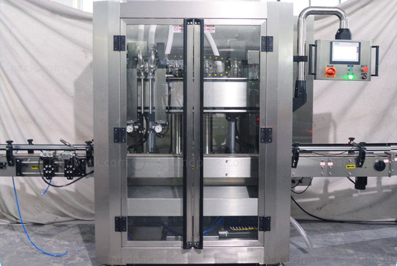 Follow-up high-speed double-head filling machine ,operated by chain conveyor, bottle clamping automatic alignment mechanism, filling mechanism, automatic servo following system, electric lifting adjustment mechanism, waterproof electric cabinet, touch-type man-machine Interface, etc.
