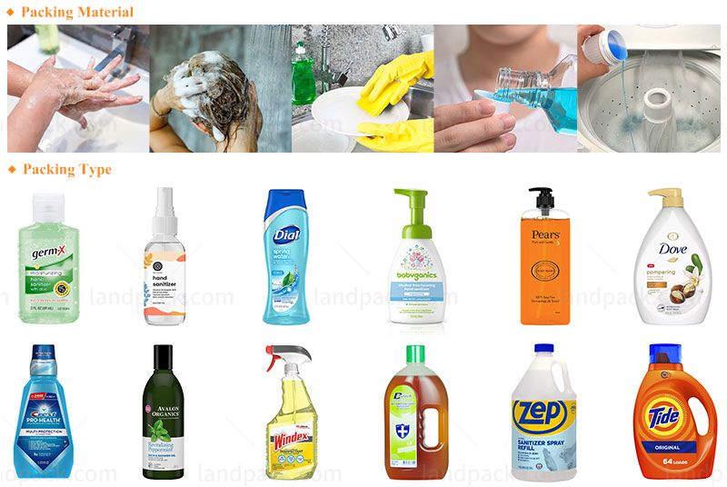 The packing line is mainly suitable for packing all kinds of liquid, fluid, and paste material, such as juice, edible oil, sauce, daily necessities, medicine, mobility liquid, detergent, automobile oil, glass water, hand sanitizer, shower gel, shampoo, etc.