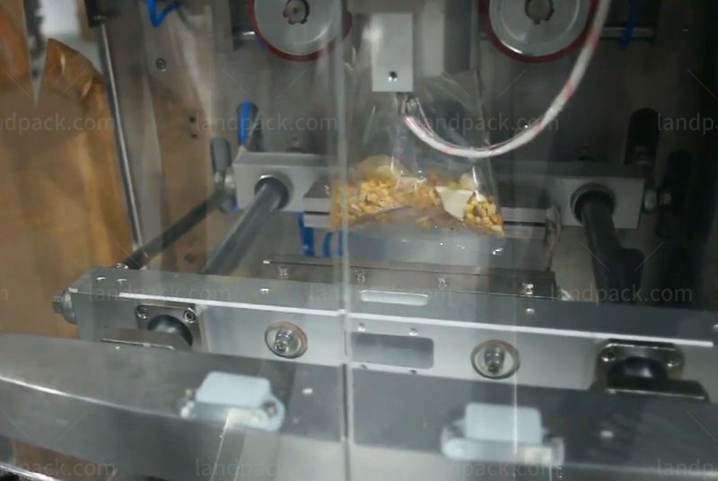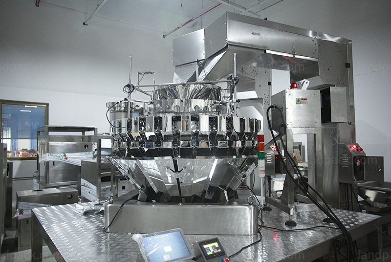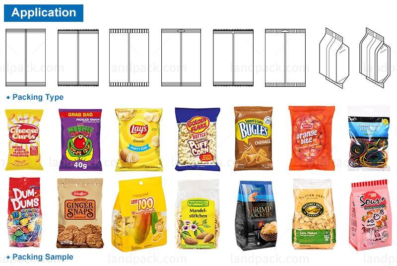 Mixed Snacks Weighing and Packing Machine LD-420A-32, it is suitable for packing all kinds of grain material, sheet material, strip material and abnormity material which such as candy, sunflower seeds, peanut, nuts, beans, potato chips, popcorn, almond, dry fruit, vegetable salad (shreded or sllices vegetables, like iceberg lettuce, cabbage, romain, spring onion and leek ect.), frozen food, jelly, biscuit, chocolate, filbert, corn, pet food, dilatant foodstuff, hardware and plastic can be weighed by the ration.
