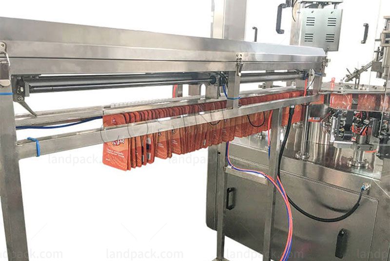 Automatic Liquid Spout Pouch Filling Capping Machine (LD-810L) it is widely used for a variety of products, such as jelly, milk, butter, fruit juices, paste, chemical liquid, water and so on.