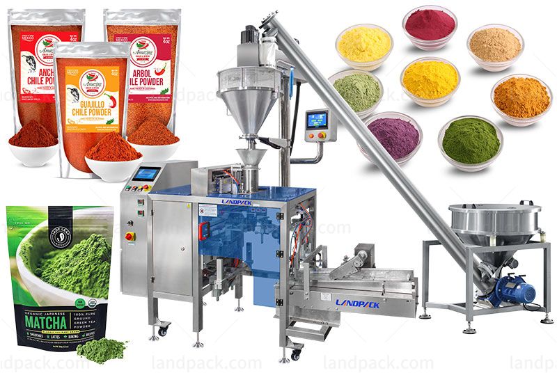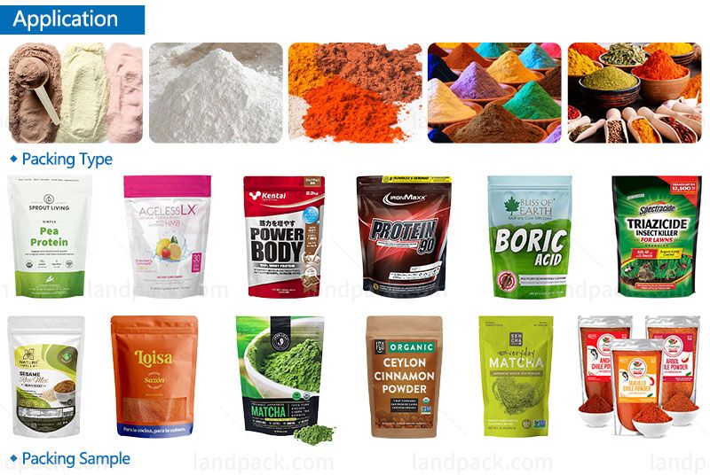 Suitable for packing powder into stand up bags such as washing powder, coffee powder, matcha powder, curry powder, seasoning powder, flour, protein powder, etc.