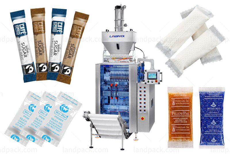 This multi-lane machine expertly forms bags, measures, fills, seals, and creates easy-tear notches, ideal for packaging in the food, cosmetics, and pharmaceutical industries. Perfect for silica desiccant, sugar, salt, pepper, washing powder, and various granules, ensuring efficient and precise packaging.