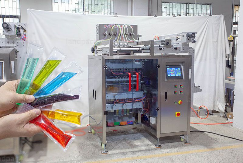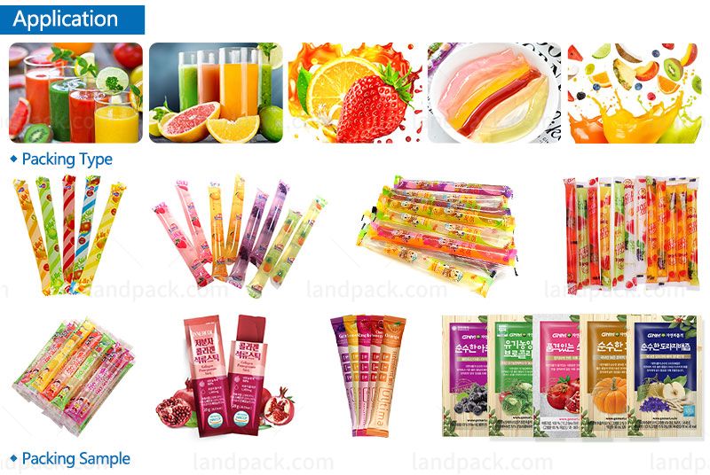 Multi lanes various flavors liquid stick packing machine suitable for many kinds of liquid products, such as popsicles, ice pop, jelly, mouthwash, ketchup, flavoring, sauce, pasty, shampoo, salad dressing, cream, body wash liquid, and so on.