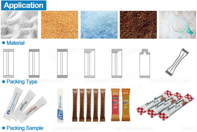 It is used for automatic filling of various granule into bags.Such as sugar, salt, coffee, seed, sesame, bean, Desiccant, Health Products Industry and So On.