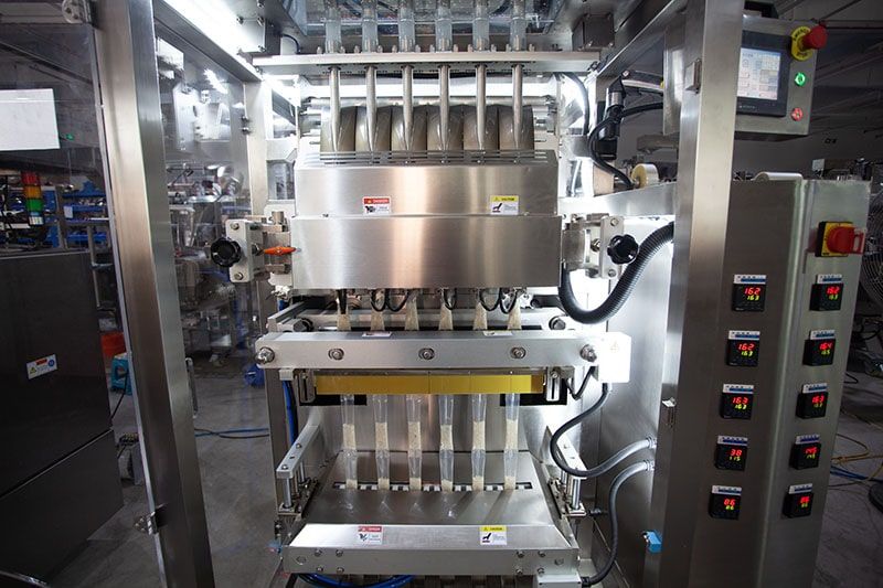 Machine main function: automatic split film at right position,liquid measuring and filling, multi lanes bag form fill seal, cutting, sensor tracking, counting capacity.