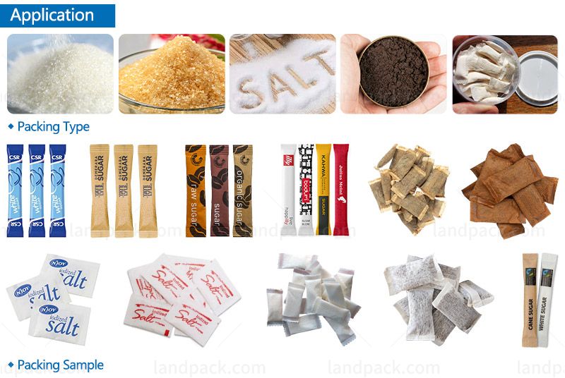 Suitable for packaging small grains with good uniformity, such as sugar, salt, snus, oatmeal, salt, seeds, rice, sesame, glucose, coffee powder, etc.