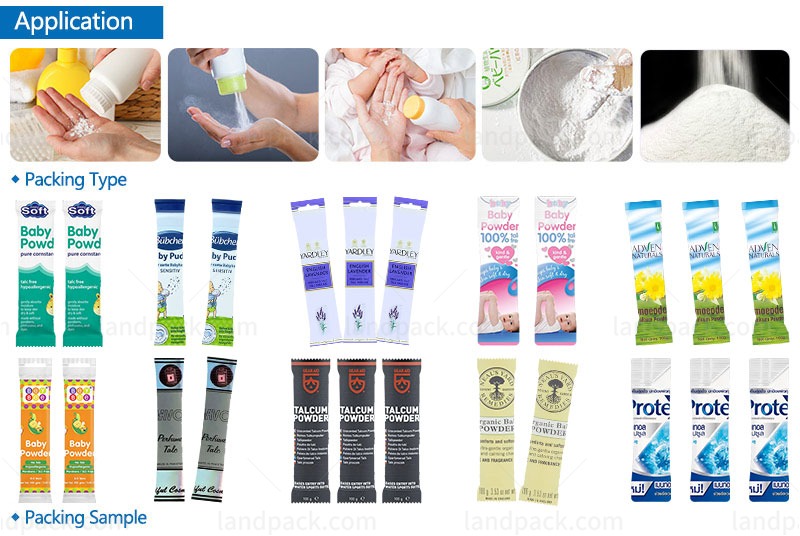 This equipment is suitable for automatic packaging of powder products with poor fluidity in food, health care and pharmaceutical industries, such as talcum powder, protein powder, medical powder, chemical powder, chicken essence, seasoning powder, milk powder.