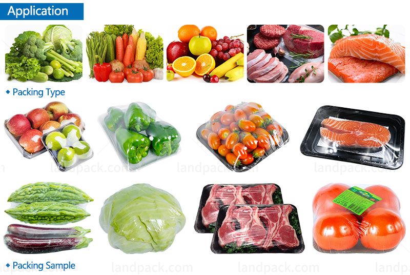 As ordinary manual or semi-auto cling film wrappers, automatic tray wrappers are widely used in packing and wrapping of food products in trays or without trays, including vegetables, frutis, agricultural products, cooked food, sushi, cheese, meat, fish and seafood, sandwich, etc. to retain freshness and presentation in supermarkets and food shops.