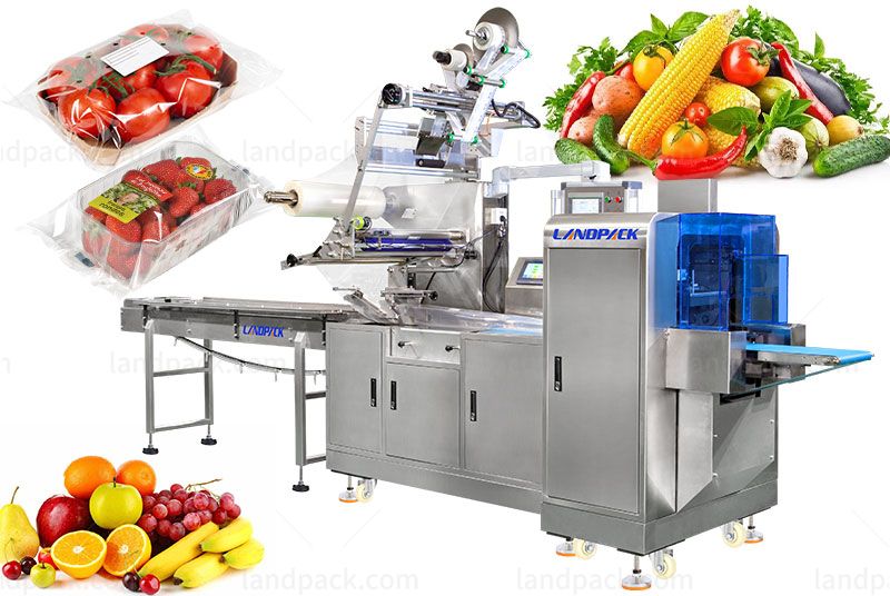 Suitable for packaging various higher products, such as fruits, vegetables, apples, oranges, potatoes, tomatoes, etc. Packaging speed is faster than ordinary pillow flow pack packing machines.