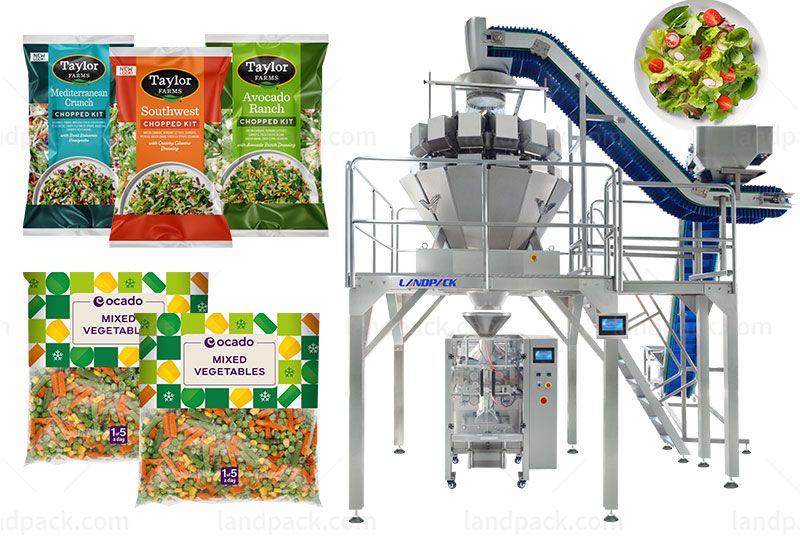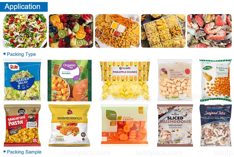 Perfectly designed for accurately weighing and packing fresh sliced vegetables and fruits, such as salads, lemons, lettuce, apples, onions, leafy greens, watercress, asparagus, corn, Chinese cabbage, peppers, and cucumbers. This machine ensures optimal freshness and quality, making it an excellent choice for produce packaging.